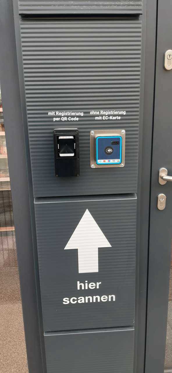 Sobald Sie Ihren persönlichen QR-Code erhalten haben, kann es losgehen. Wenn Sie vor unserem Smartstore stehen, halten Sie einfach ihr Smartphone mit dem QR-Code an den Türöffner – Sie können dann direkt eintreten.